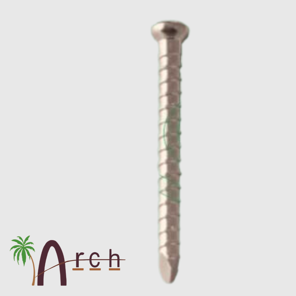 In orthopedics, screws are typically described by their outer diameter, for example, a “Locking Bolts 4.9mm” has an outside diameter of 4.9 mm. The pitch of a screw is the linear distance travelled by a screw for one full turn of the screw. The screw advances by a distance equal to the distance between the threads with each full turn. Cortical screws have a lower pitch and therefore more number of threads. Cancellous bone screws have a greater depth of the screw to increase the surface area and therefore improve the purchase, as the bone is weaker.